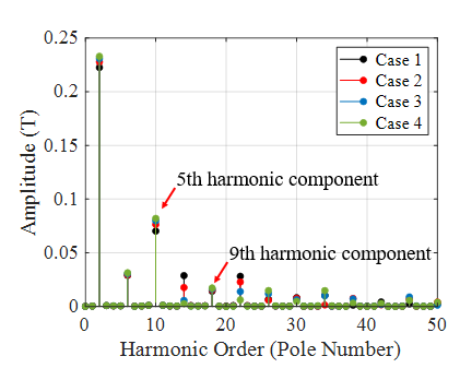 Fig. 12. Air gap magnetic flux density FFT analysis results
