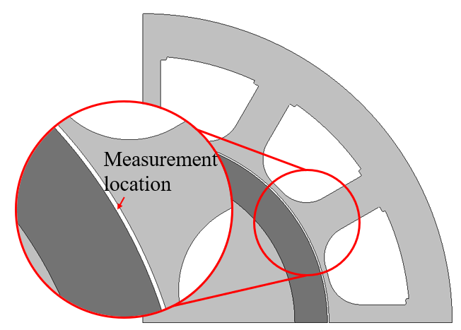 진행한 해석에서 사용된 고정자의 재료는 퍼멀로이이며, 최대 자속밀도가 약 1.5T 정도이다. 따라서 브릿지 부분에 발생하는 최대 자속밀도는 1.7T정도이며,