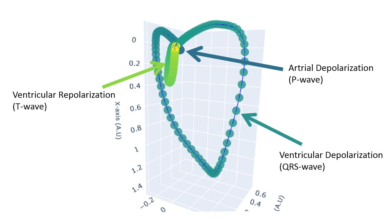 심장의 수축(systole)과 이완(diastole) 과정을 포함한다. 이러한 주기적 특성을 기반으로 신호를 분할 하면, 벡터심전도의 3D 모델을