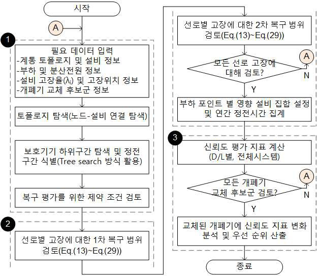 이와 같은 반복 계산이 필요한 이유는, 특정 수동 개폐기를 자동화 개폐기로 교체할 경우, 고장 시 정전 구간 국소화 및 복구 경로가 변경될 수 있으며,