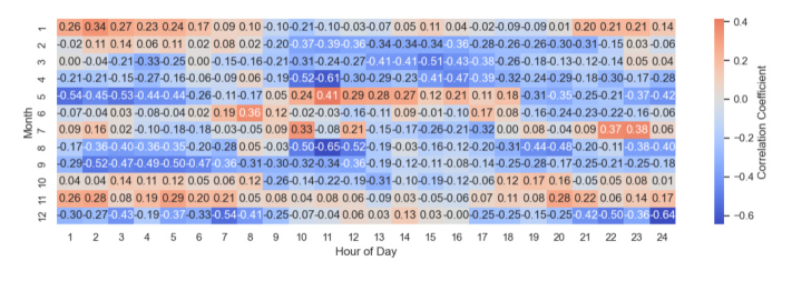 그림 17. 재생에너지 발전량과 SMP의 월-시간별 부분 상관계수