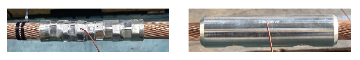 그림 3. 알루미늄 나전선 압착 및 볼트 타입 슬리브 체결부