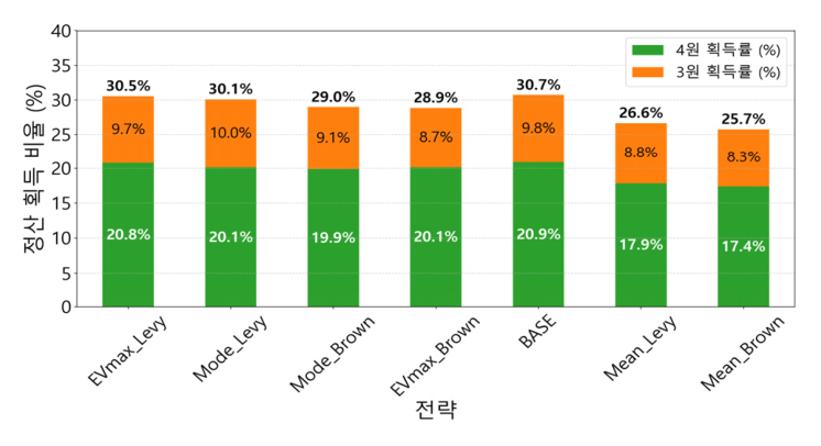 반면 확률 분포 기반 전략들 사이에서는 정산 획득률 순위와 누적 정산금의 순위가 일치하는 경향을 보인다. 즉, BASE 전략은 정산 인정 구간 내에