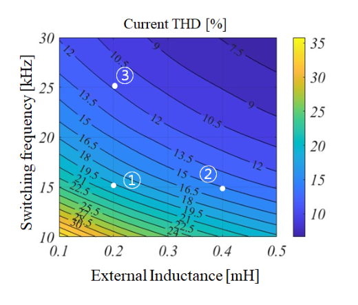 그림 6. 스위칭 주파수와 외부 인덕턴스에 따른 전류 THD
