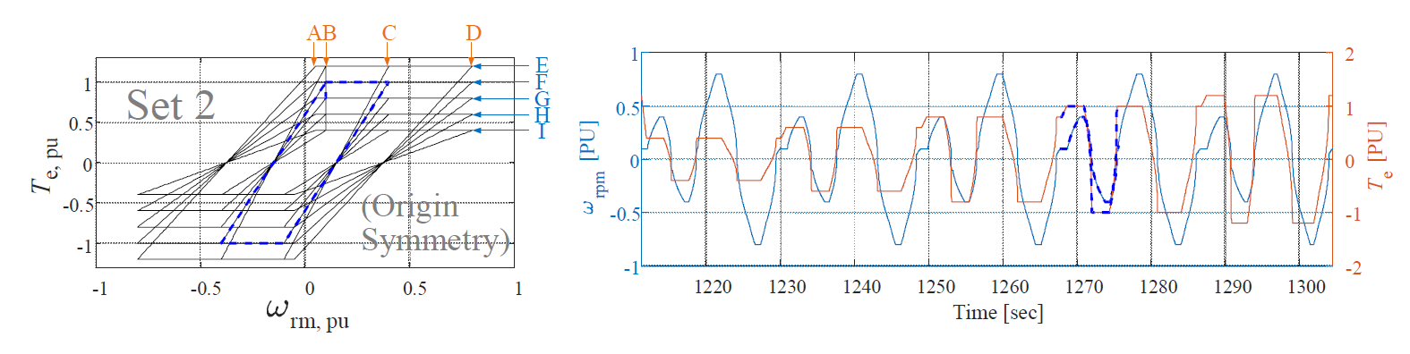 여기서 k는 1, 11, 21, 31, 41, 51로, 그림 3에 해당 인덱스들의 위치가 표시된다. $\omega_{rm}$은 회전자의 rad/s로 나타낸 기계각 속도이고, $T_e^*$는 토크 지령 값을 의미한다.